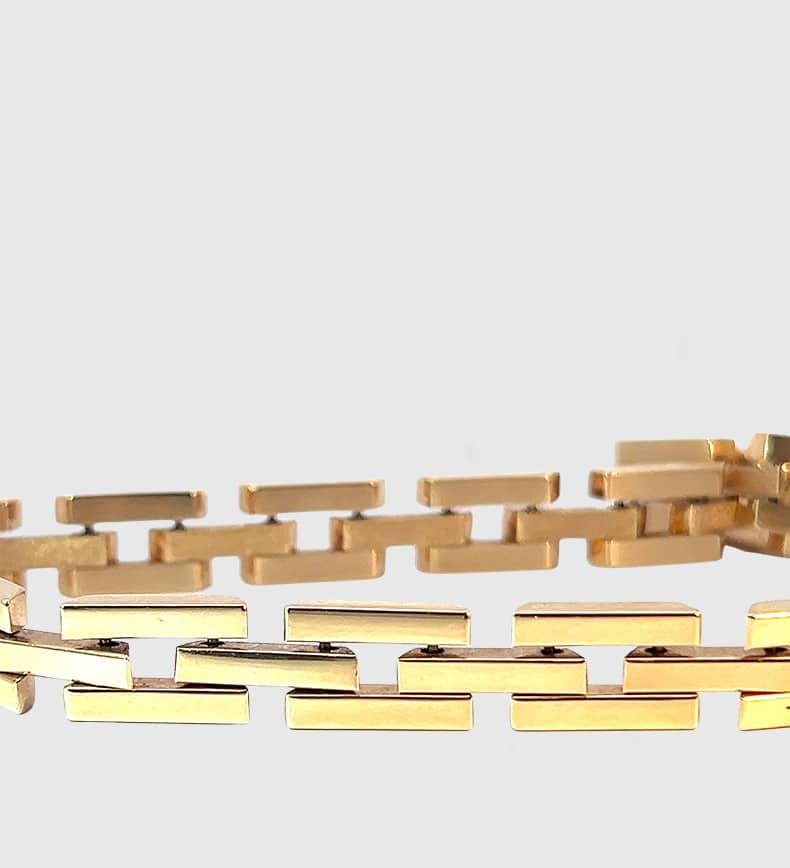 Materiale: Guld Stempel: 585 EHS DANMARK Karat: 14 karat Vægt: 52,66 g Mål: Længde: 40,0 cm - Bredde: 1,0 cm Designer: E.H.S - Egon Holmgaard Sørensen - Copenhagen - 1958 - 1973 Varenummer: HK011225-19 "