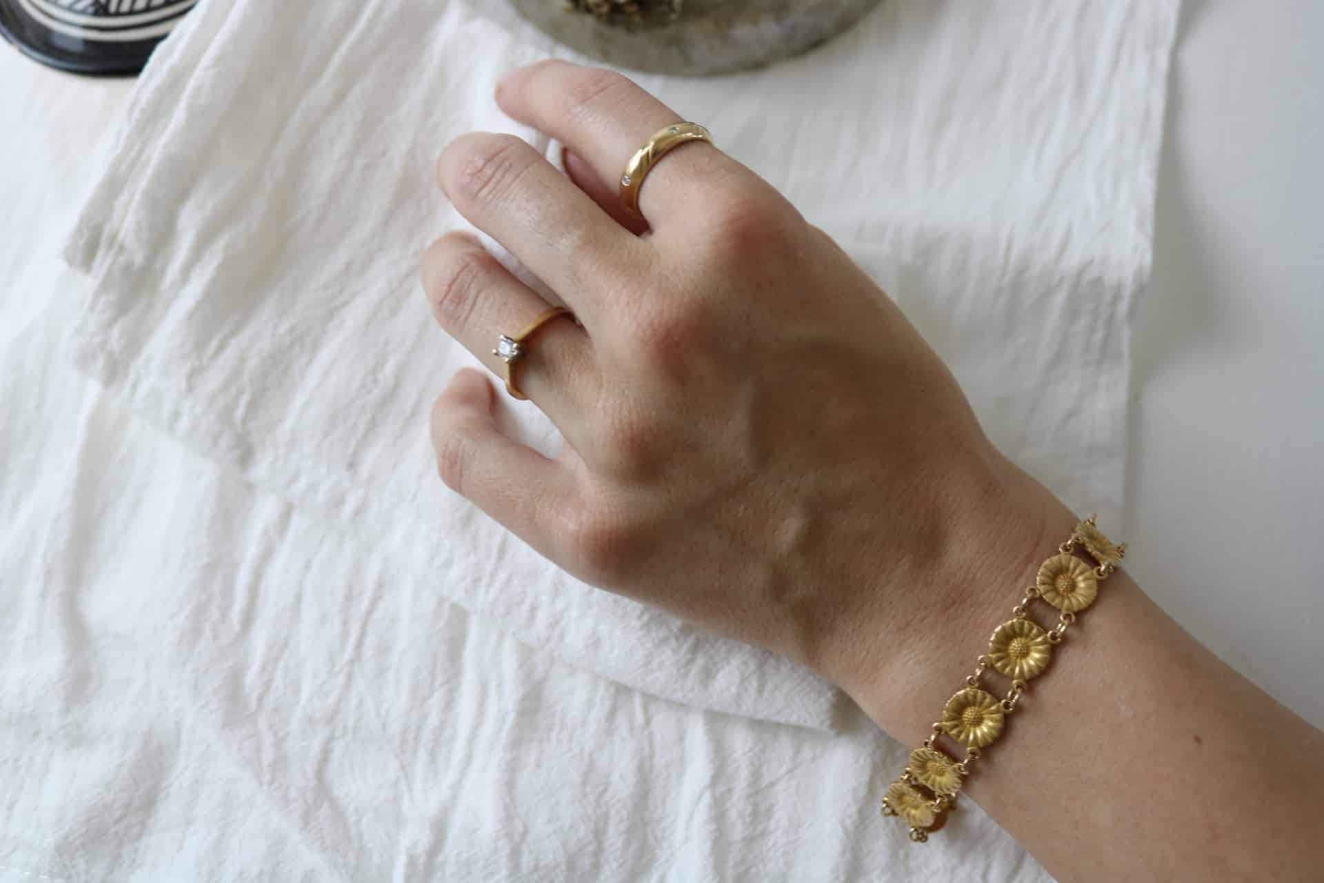 Hver vare har sin egen historie – de er alle vintage og viser, som billederne, den charme og lette brugsslitage, der følger med tidens patina. Alle smykker renses med ultralyd og kontrolleres grundigt for funktion og udseende. Let brugsslitage som fine ridser og små buler kan forekomme – det er en del af smykkets historie. Stand og detaljer beskrives ærligt, og billederne viser det præcise smykke, du køber.